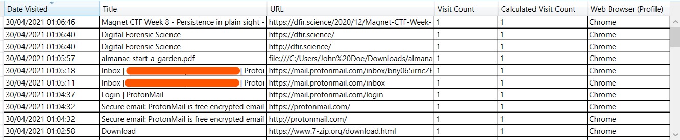 Follow the same process as demonstrated on Question 2, I have found interested user’s history where the suspected user had explored to the protonmail.