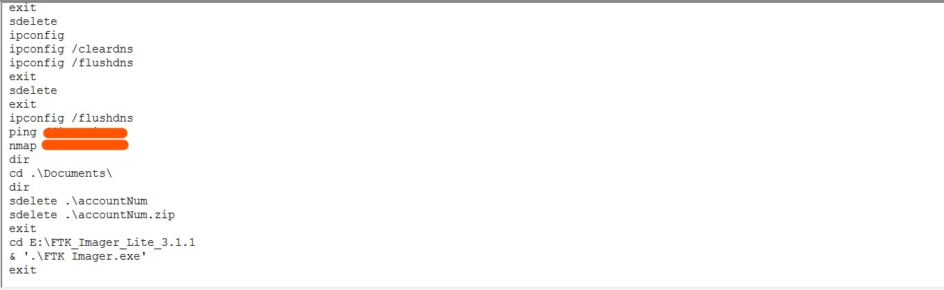 As shows on picture above, the suspected user used the nmap to perform port scanning through powershell and we could see the answer rightaway.