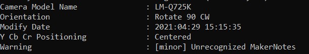 This question took me a while. First, I gathered information about the file by using exiftool and found that the phone model which uses to take this picture is LM-Q725K.